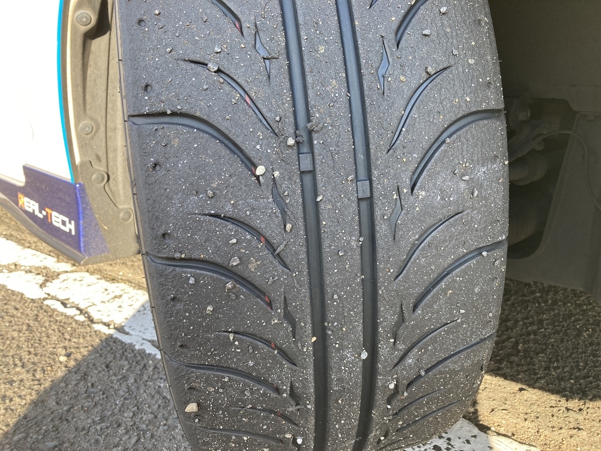 路面状態がすこし改善したり、慣れもあって少しは走れるようになったものの…当然ながら国産ラジアル(A052や71RS)勢には歯が立たずでした。